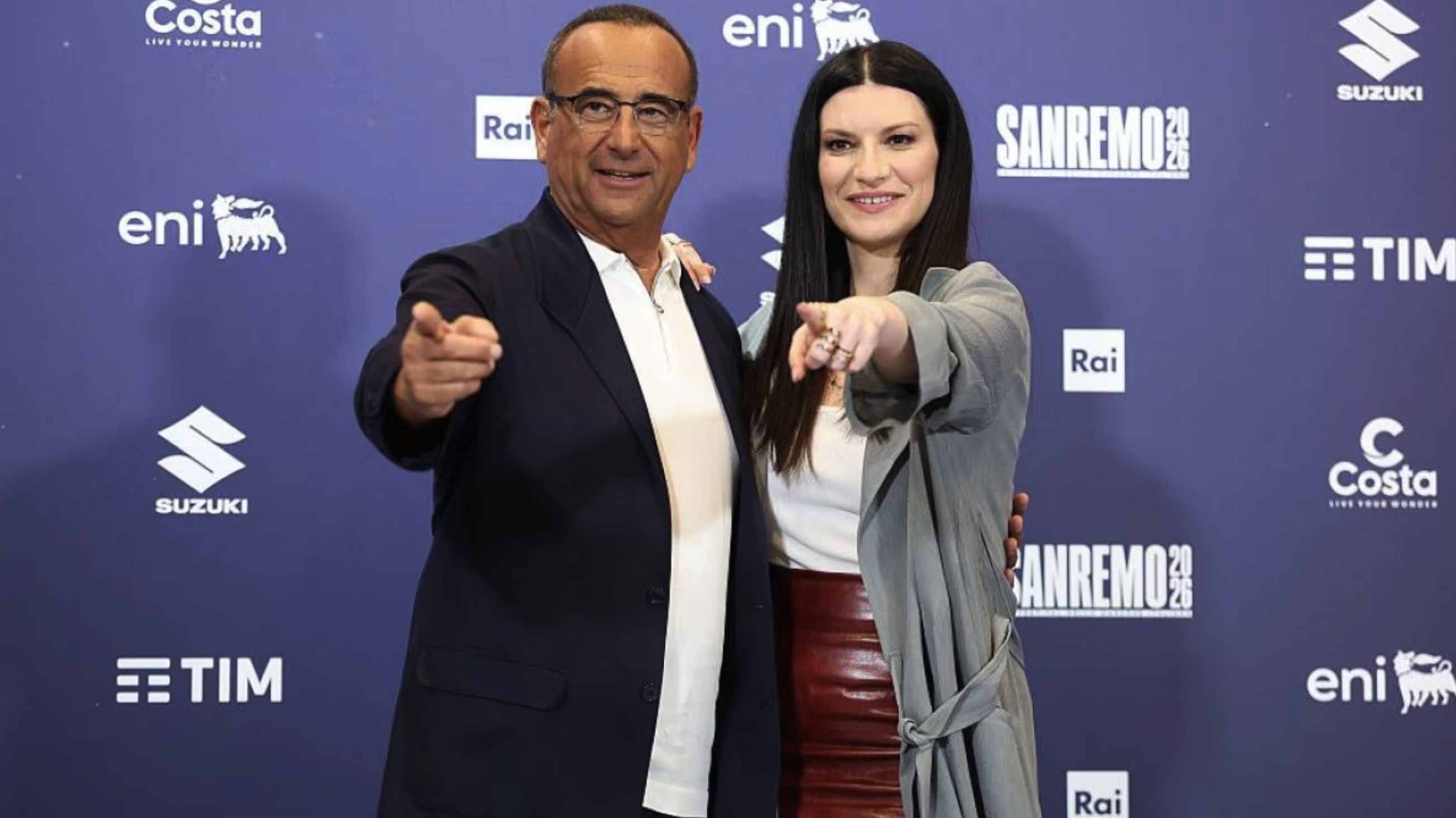 Laura Pausini e Carlo Conti, gaffe in diretta sul microfono: la battuta diventa virale
